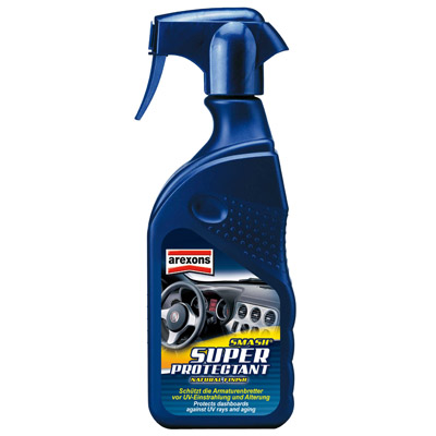 Το Super Protectant συστήνεται ιδιαίτερα για τα νέας γενιάς ταμπλό (σατινέ φινίρισμα), καθώς καθαρίζει, αποκαθιστά και προστατεύει τα ταμπλό, όλα τα πλαστικά, τα δερμάτινα, τις απομιμήσεις δέρματος, τις λαστιχένιες και ξύλινες επιφάνειες του αυτοκινήτου. Η ειδική ουδέτερη σύνθεσή του, που δεν περιέχει διαλύτες, σχηματίζει ένα αντιστατικό προστατευτικό φιλμ το οποίο απωθεί τη σκόνη, προλαμβάνει το σχηματισμό λεκέδων και απωθεί γενικότερα το νερό και τη βρωμιά. Αφήνει τις επιφάνειες λείες και απαλές στο άγγιγμα.